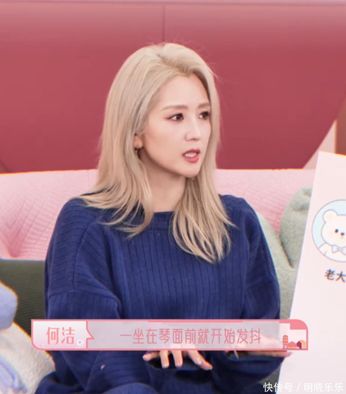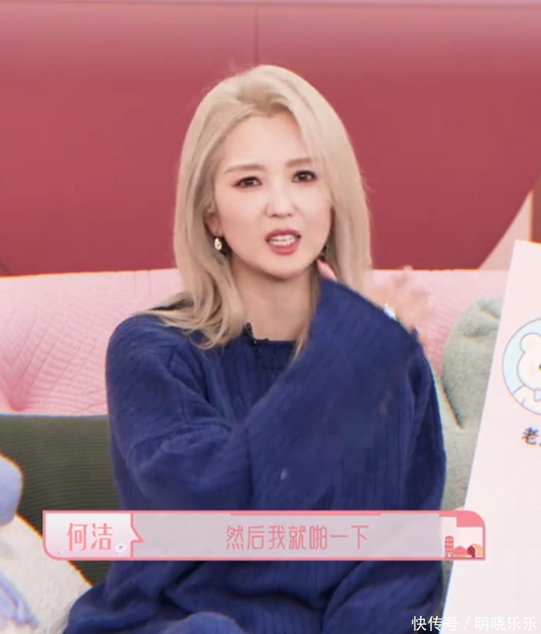 镜头里的何洁一头浅金色微卷中发,衬得皮肤透亮,一身蓝色针织套装显得人又瘦又精神,整个人透着股松弛的成熟感——再婚后的她,状态是真的稳了。不过更让人在意的,是她说起教育儿子时那段“翻车”经历。