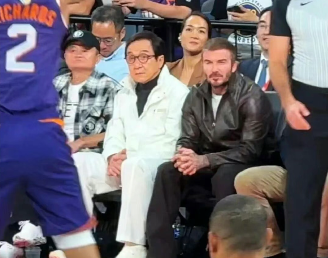 马云现身NBA中国赛,与成龙、贝克汉姆同框并排坐